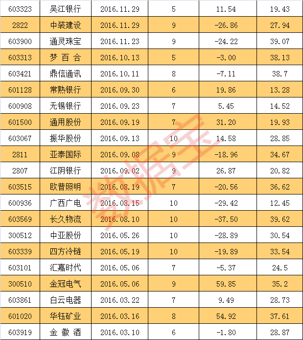 上市3个月以内的次新股中,家家悦、兴业股份等个股开板后股价仍大跌超过15%,贵广网络、百合花、森特股份等开板后股价也处于下跌状态。上市3-6个月次新股中,上海银行、杭州银行、华安证券、三角轮胎、中装建设、通灵珠宝等个股开板后股价大跌均超过10%;上市6-12个月次新股中,广西广电、中亚股份、四方冷链、长久物流、欧普照明、亚泰国际等个股开板后跌幅较大。