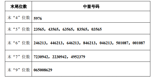 凡参与本次网上定价发行的投资者持有的申购配号尾数与上述号码相同的,则为中签号码。中签号码共20,000个,每个中签号码只能认购 1,000 股深圳市新星轻合金材料股份有限公司A股股票。