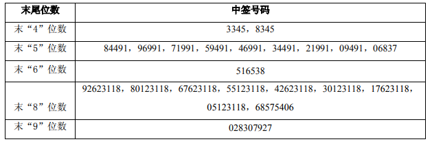 凡参与网上发行申购春风动力A股股票的投资者持有的申购配号尾数与上述号码相同的,则为中签号码。中签号码共有30,001个,每个中签号码只能认购1,000股春风动力A股股票。