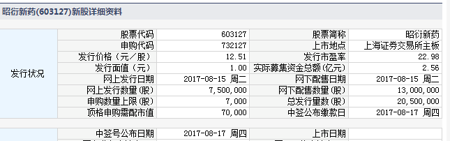 昭衍新药8月15日发行 申购上限7000股