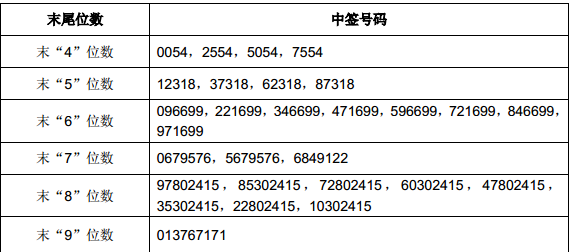 凡参与网上发行申购台华新材 A 股股票的投资者持有的申购配号尾数与上述号码相同的,则为中签号码。中签号码共有60,840个,每个中签号码只能认购1,000 股台华新材 A 股股票。