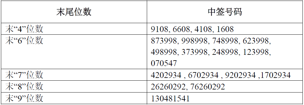 凡参与网上发行申购江苏苏博特新材料股份有限公司A股股票的投资者持有的申购配号尾数与上述号码相同的,则为中签号码。中签号码共有68,400个,每个中签号码只能认购1,000股江苏苏博特新材料股份有限公司A股股票。