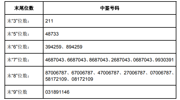 凡参与本次网上发行的投资者持有的申购配号尾数与上述号码相同的,则为中签号码。中签号码共有240,210个,每个中签号码只能认购1,000股山东出版A股股票。