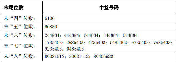 凡参与本次网上定价发行申购佛燃股份股票的投资者持有的申购配号尾数与上述号码相同的,则为中签号码。中签号码共有100,800个,每个中签号码只能认购500股佛燃股份股票。