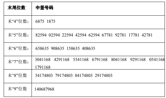 凡参与本次网上定价发行申购深圳明阳电路科技股份有限公司股票的投资者持有的申购配号尾数与上述号码相同的,则为中签号码。中签号码共有55,440个,每个中签号码只能认购 500 股深圳明阳电路科技股份有限公司股票。