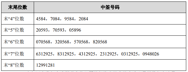 中签号码如下:
