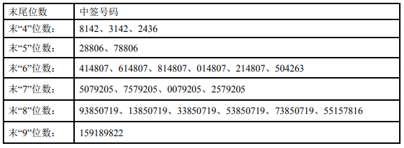 中签号码如下: