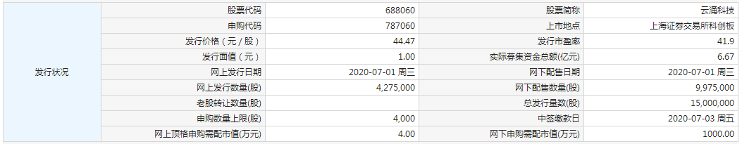 云涌科技今日申购 顶格申购需配市值4万元