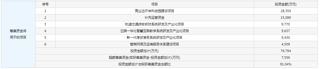 【筹集资金将用于的项目】