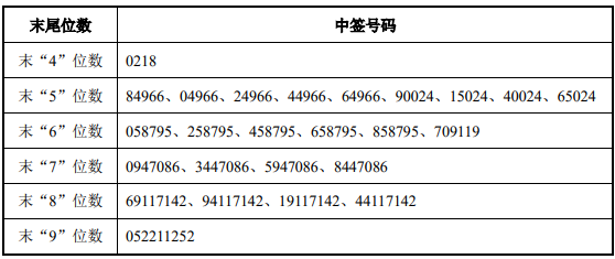 中签号码如下: