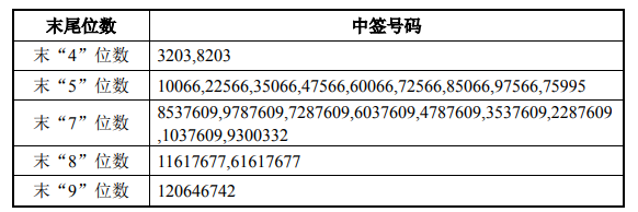 中签号码如下: