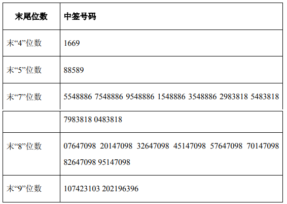 中签号码如下: