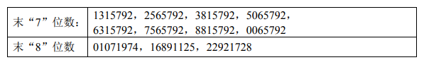 中签号码如下: