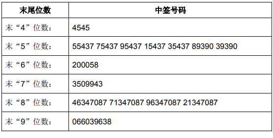 中签号码如下:
